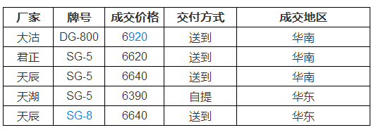 据找塑料网成交数据显示(见表1),今日上午国内PVC市场价格在期货及运费大涨的预期下继续疯狂拉涨,场内交投气氛活跃,部分封盘不报,在需求并未有大的好转之下,目前市场贸易商存在大量囤货现象。今日华东电石法SG-5主流价格维持在6450-6550元/吨(自提);华南市场普通5型电石料主流成交价6500-6600元/吨(自提)。