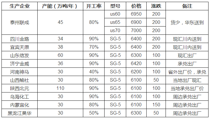表2 9月19日找塑料网PVC出厂价格调整一览表(单位:元/吨)