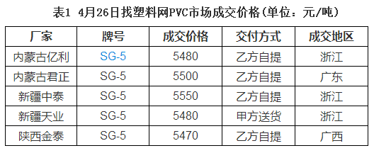 据找塑料网成交数据显示(见表1),今日国内PVC市场整体成交价格小幅拉涨。期货价格走高,带动场内交投氛有所好转。低端货源减少,高端货物出货受阻。今日5型电石料华东市场成交价格5330-5450元/吨自提,华南主流成交价格5350-5430元/吨自提,更高价格存在。