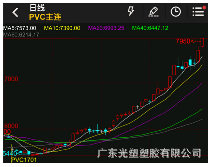 今日1701合约强势上涨,开盘报7780元/吨,最高报7950元/吨,最低至7735元/吨,收于7950元/吨,上涨340元/吨,成交量311484手,持仓量减少16614手至173158手。找塑料预计短线1701合约将维持震荡偏强行情。