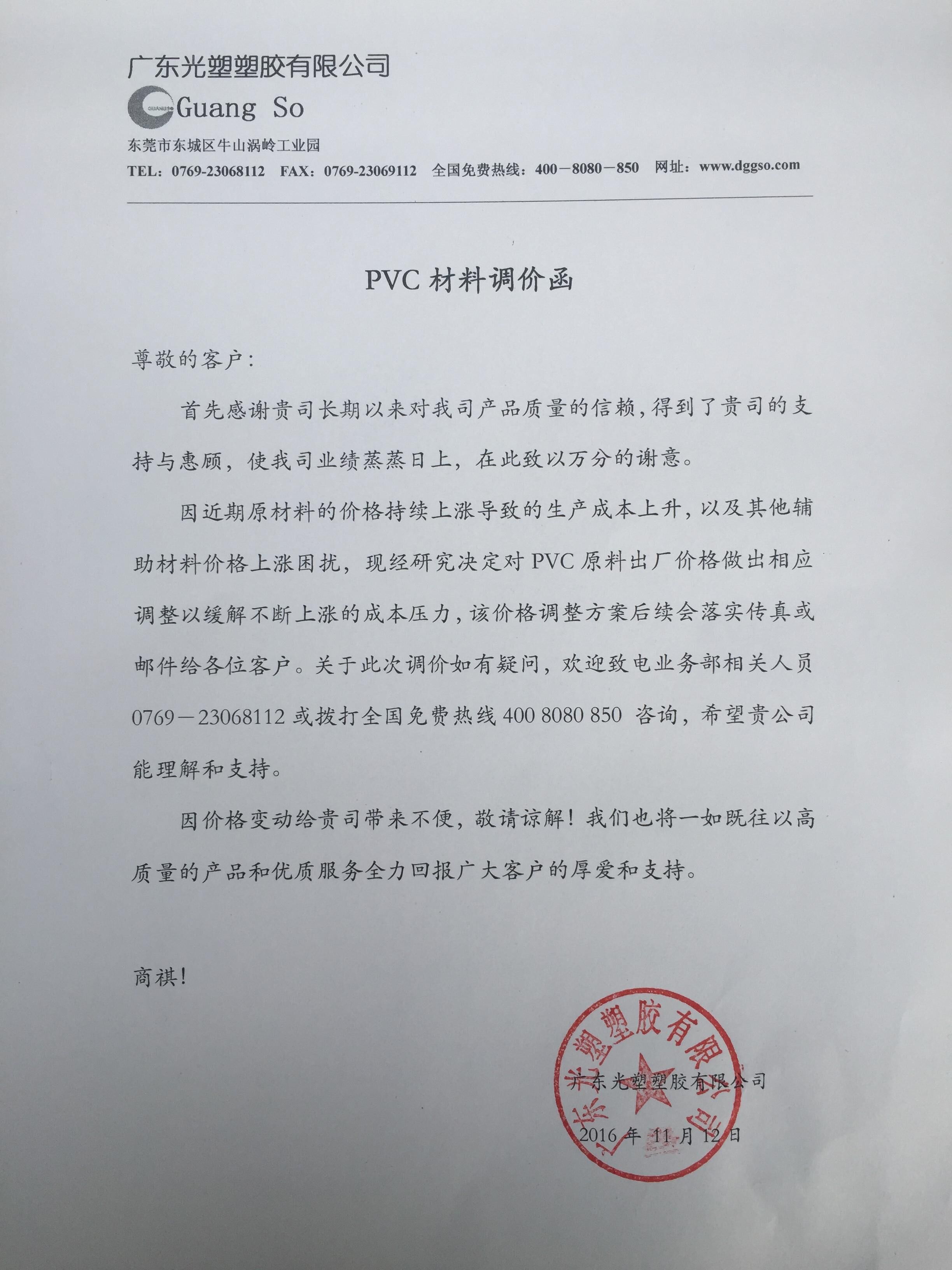 文章标题:近期PVC原材料涨幅异常,上游供应链有炒作屯货嫌疑,望各客户细观而后行。