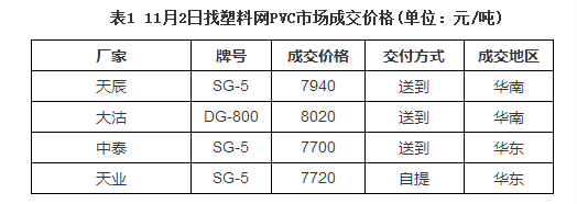 据找塑料网成交数据显示(见表1)今日上午国内PVC市场成交价格继续上调,场内货源紧俏依旧是市场拉涨的主要原因。西北货源运输困难,车皮紧张,汽运费用再度拉涨60-70元/吨,有力支撑价格高位。期货市场跳水,但在缺货的局面下,已经难以控制现货市场了。今日华东电石法SG-5主流价格维持在7600-7700元/吨(自提);华南市场电石法SG-5主流成交价7800-7850元/吨(自提)。找塑料国内PVC实际成交指数为968点,较上一交易日上调5点。
