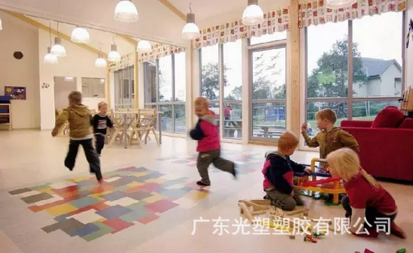 9、接缝小及无缝焊接:特殊花色的PVC片材地板经严格的施工安装,其接缝非常小,远观几乎看不见接缝;PVC卷材地板用无缝焊接技术可以达到完全无缝。