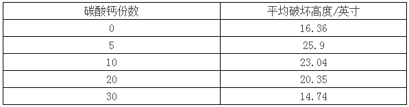1.通过上述实验得知完全塑化的PVC的性能并不是最好的,而是在少量添加不塑化的碳酸钙的材料落锤冲击性能最好,随着塑化度继续下降,落锤冲击性能也随之下降,填充量达到20份以上时,落锤冲击性能下降的更快。