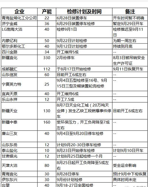 9月份企业检修所涉及产能仍不在少数,且山东、青海、新疆、四川等地第四批中央环保小组还未撤离,环保力度仍然存在,将继续影响该地区PVC开工情况。十九大逐渐临近,环保及安全力度将会继续强劲。