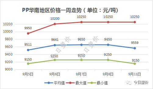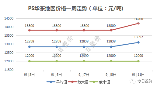 上游苯乙烯方面,9月11日韩国FOB主港收盘价格下跌15美元/吨报1373.5-1374.5美元/吨,国内华东苯乙烯收盘价格上涨50元/吨报11800元/吨。目前下游需求跟进一般,大中型企业订单稳定;中小企业开工略有不足,但鉴于多数企业已完成了一轮补货,本周批量拿货踊跃氛围或难出现。预计今日PS/EPS市场将维持整理格局。