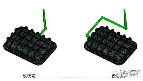 改善后效果如下:可以看出在更改进胶口位置以后,制品无翘曲痕迹,这样才是良好的制品.