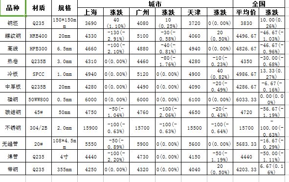 28日晨:昨唐山钢坯涨40,国义、兴隆3690含税出厂,矩形坯3710,低合金方坯3810