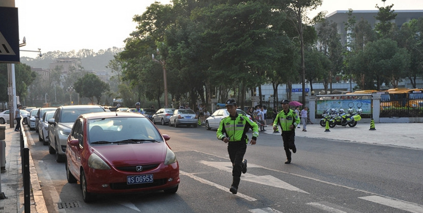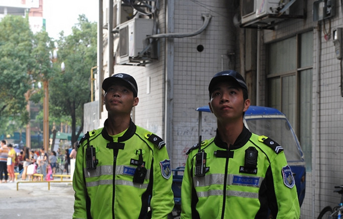 接到警报后,正在学校外巡逻执勤的铁骑队员张志波和刘文山迅速赶往现场处置。