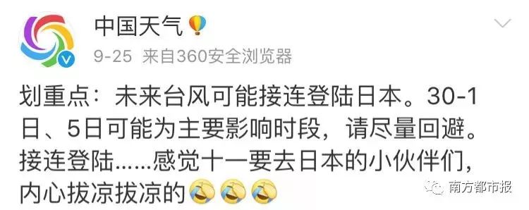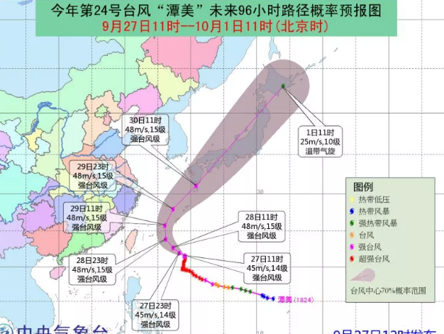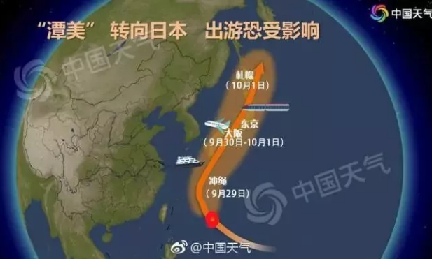另据@广州天气,“潭美”28-29日最接近台湾,随后掉头往东北方向移动,国庆期间前往台湾的朋友不用担心。