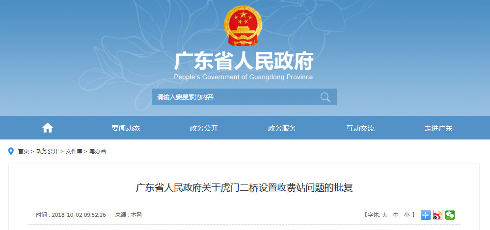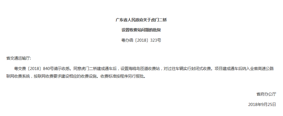 10月2日,即在国庆节假日期间,广东省人民政府门户网站加班加点发布重磅公告,即有关虎门二桥设置收费站问题已获省府批复,为明年虎门二桥的开通前期准备工作全面加速同步推进,预计虎门二桥将于明年上半年建成通车,通车后打通珠江两岸交通瓶颈,极大缓解目前虎门大桥的拥堵状况。