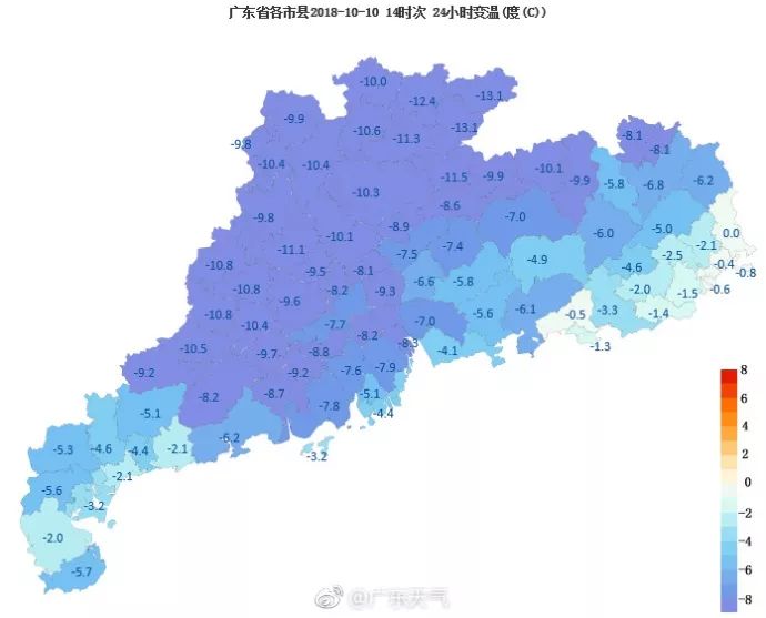 整个广东省温度都在降