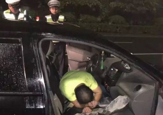 在现场,民警发现车辆并未熄火,靠近时则发现驾驶员侧躺在座位上,昏睡不醒,车内酒气熏人。车后座还有一小朋友在睡觉!当时凌晨时段,正是环城路多大型车出没的时段,车辆长时间停留在机动车道极易引发交通事故,情况相当危险。