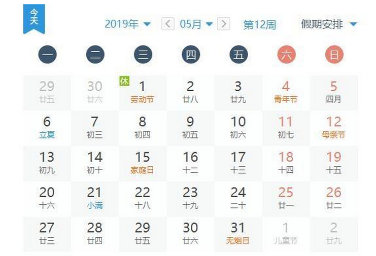 IT之家3月22日消息 据中国政府网消息,2019年5月1日至4日放假调休,共4天。4月28日(星期日)、5月5日(星期日)上班。对此,国家发展改革委有关负责人表示,这样的调休安排顺应了社情民意,有利于更好满足人民群众多元化多样化的需求,进一步提升人民群众的获得感和幸福感。