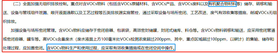 这个名词解释说明一个问题,塑料行业不属于不要求采取无组织排放收集措施的“辖免”范围。而且既然进入了重点行业管理,就要服从整个行业的管理要求。