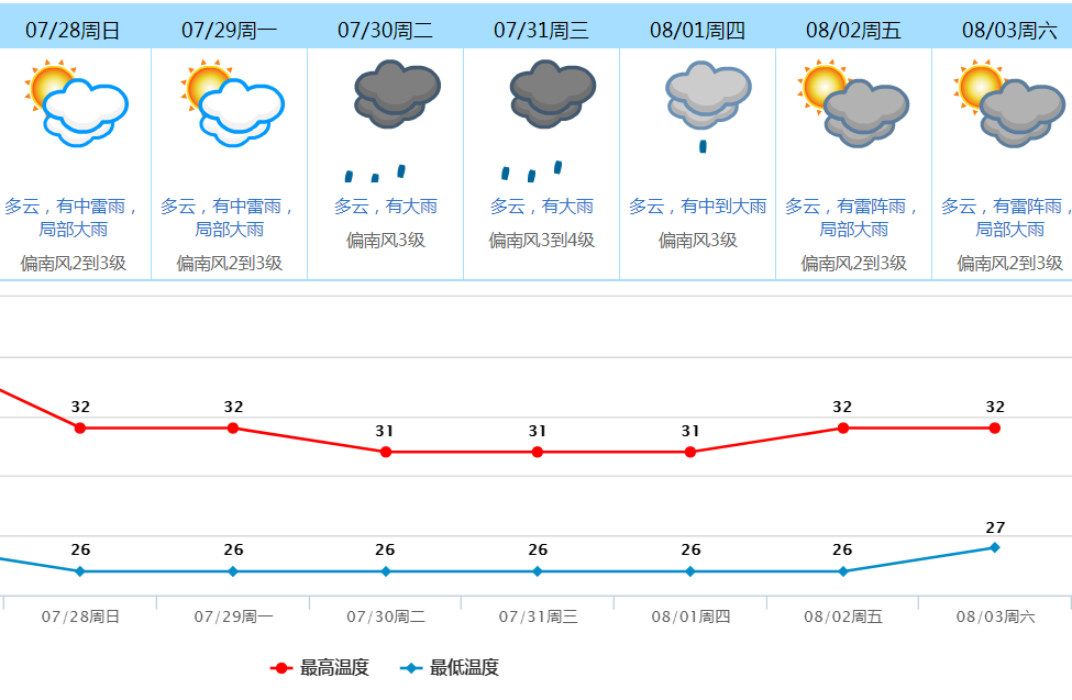 7月30日-8月2日受热带系统影响,降雨频繁,风力有所加大;