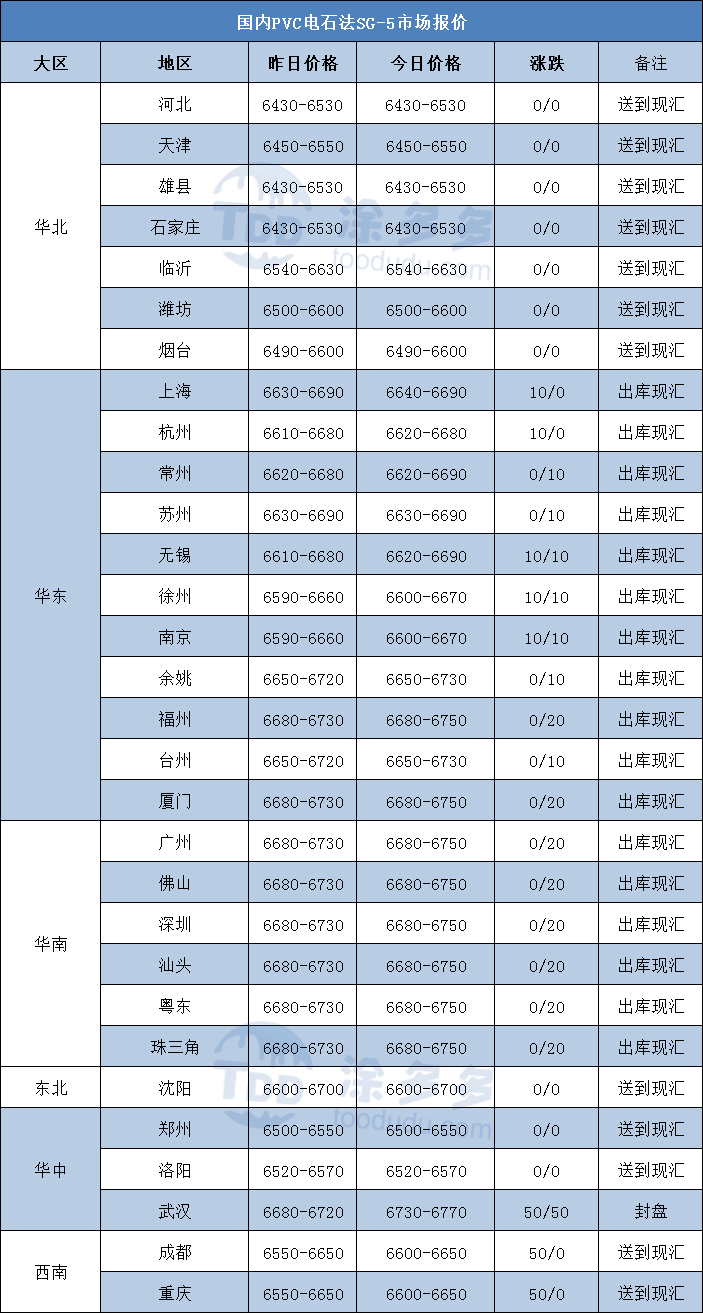 PVC市场主流成交价格小幅上涨,实际出货维持前期